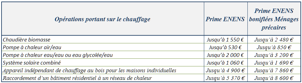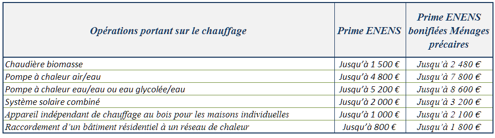La société ENENS est signataire de la charte « Coup de Pouce Chauffage» mise en œuvre par le Ministère en charge de l’énergie et s’engage à verser la prime coup de pouce portant sur les travaux de chauffage (remplacement de chaudières, pompes à chaleur notamment).
